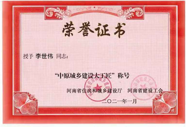 华体会在线登录官网-华体会(中国)李世伟同志获“中原城乡建设大工匠”称号